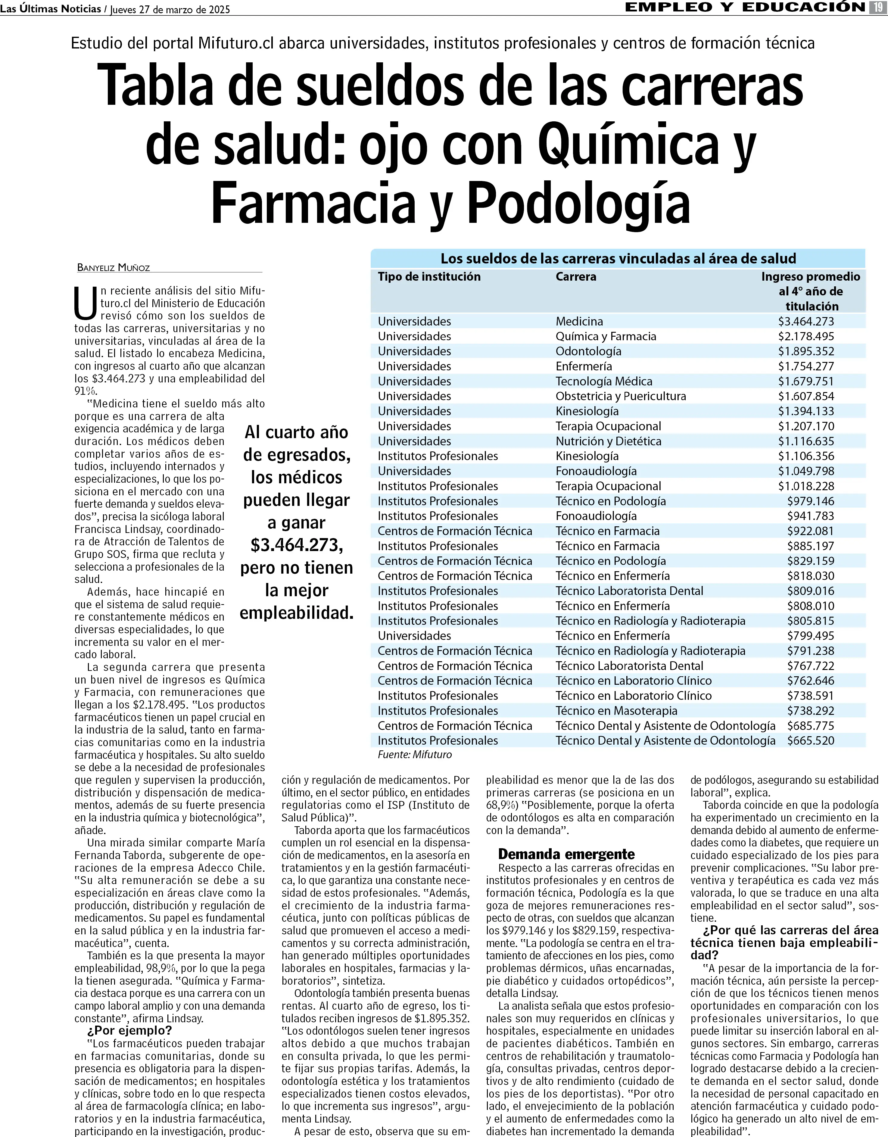 Tabla de sueldos de las carreras de salud: ojo con Química y Farmacia y Podología