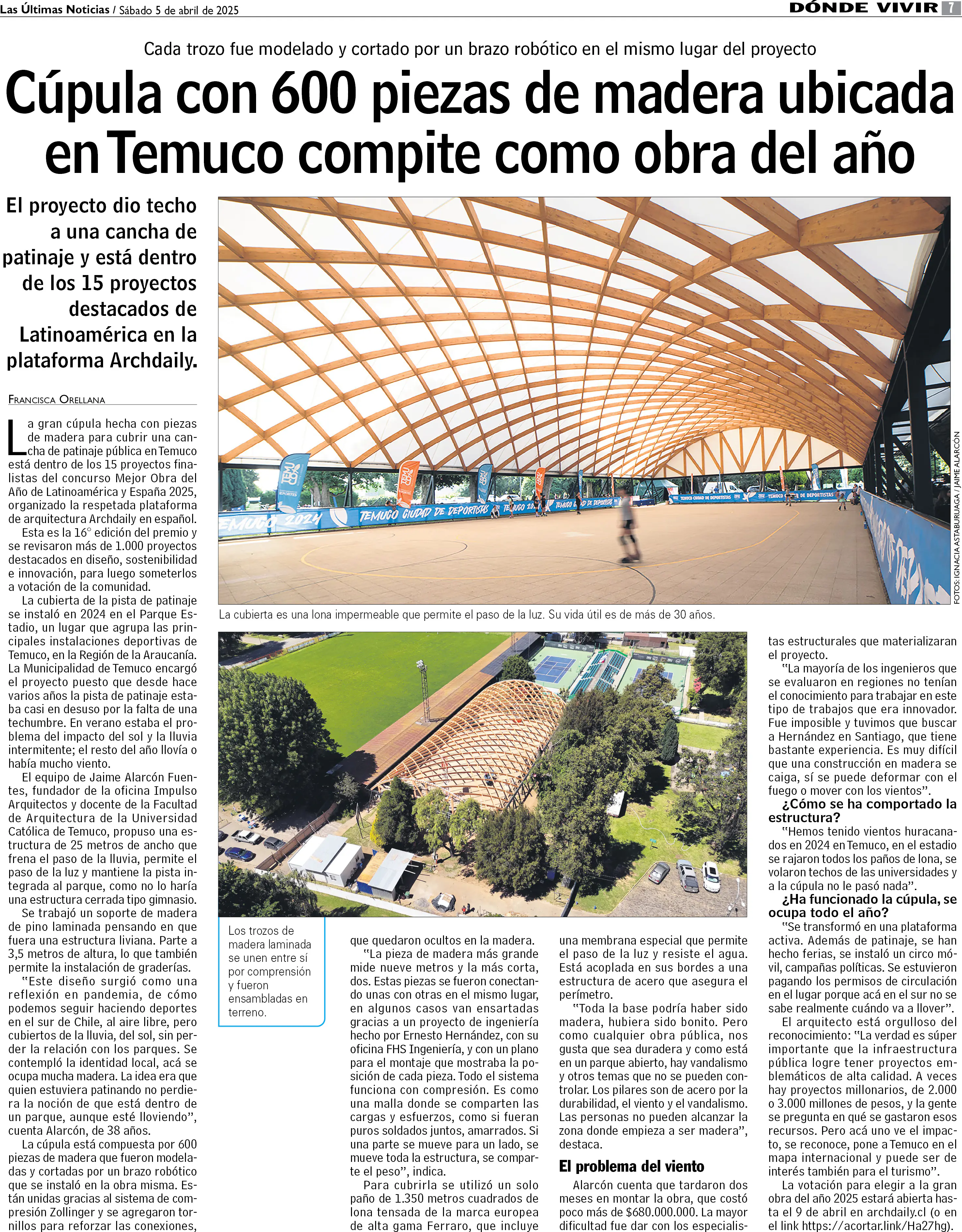 Cúpula con 600 piezas de madera ubicada en Temuco compite como obra del año