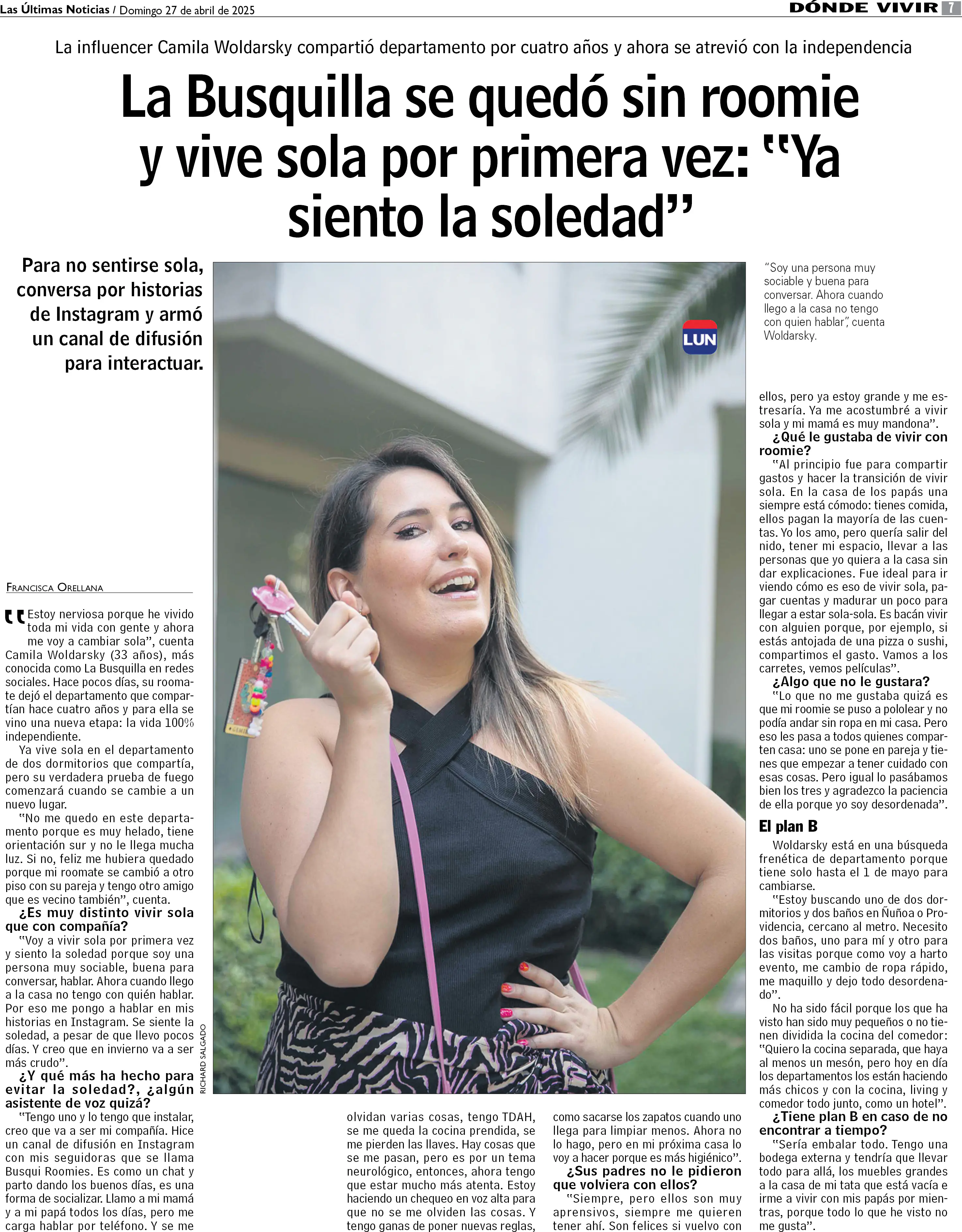 La Busquilla se quedó sin roomie y vive sola por primera vez: "Ya siento la soledad"