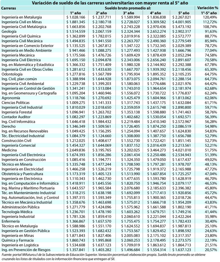 Las carreras donde más sube el sueldo a 5 años de la titulación