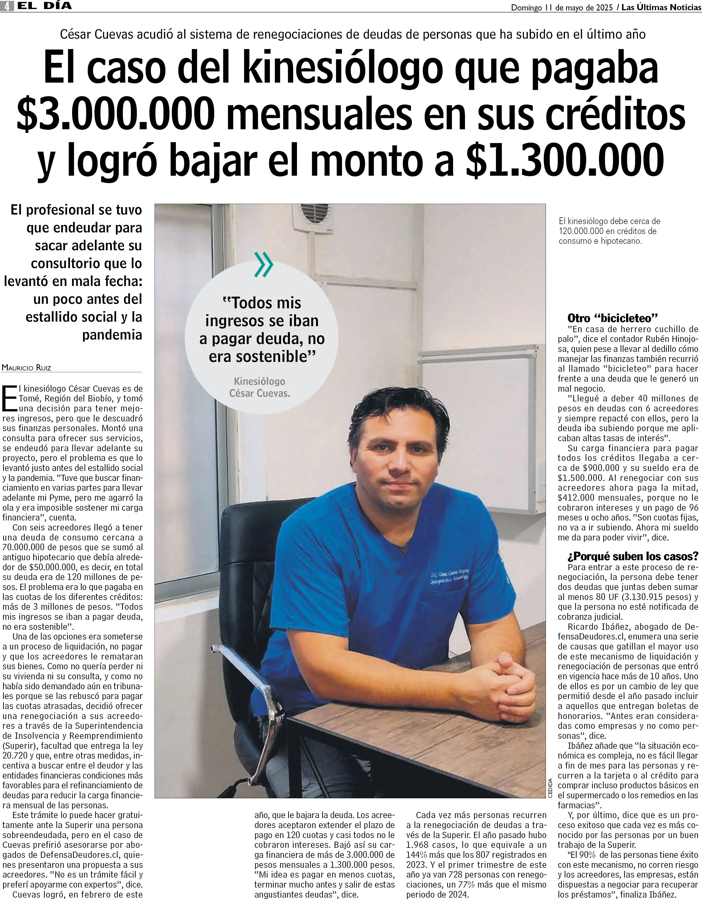 El caso del kinesiólogo que pagaba $3.000.000 mensuales en sus créditos y logró bajar el monto a $1.300.000