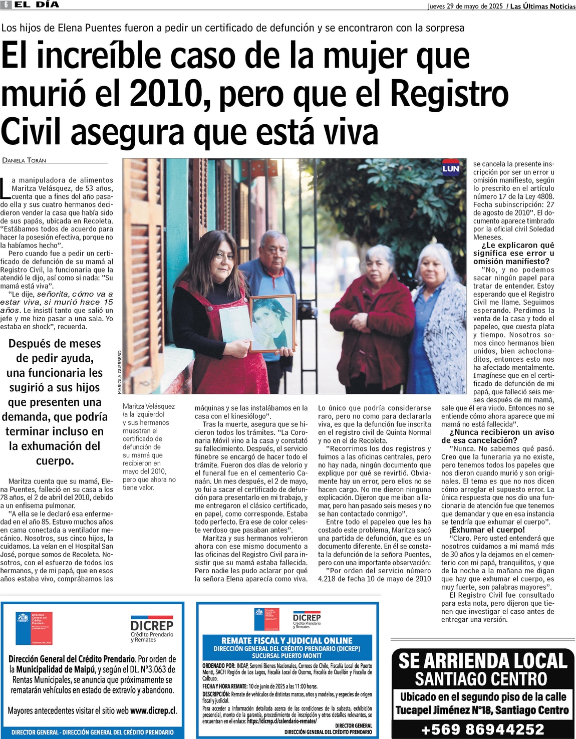El increíble caso de la mujer que murió el 2010, pero que el Registro Civil asegura que está viva