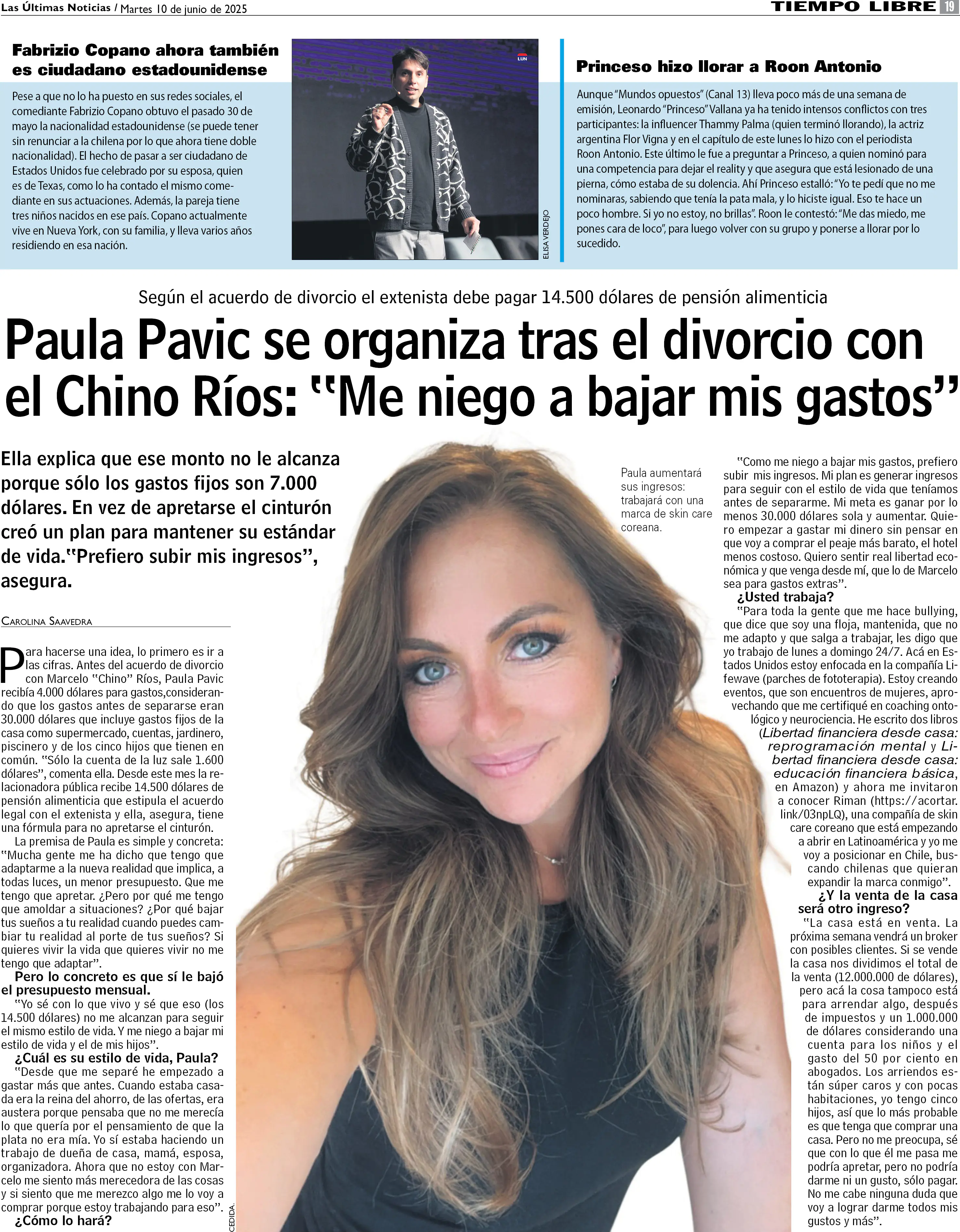 Paula Pavic se organiza tras el divorcio con el Chino Ríos: "Me niego a bajar mis gastos"