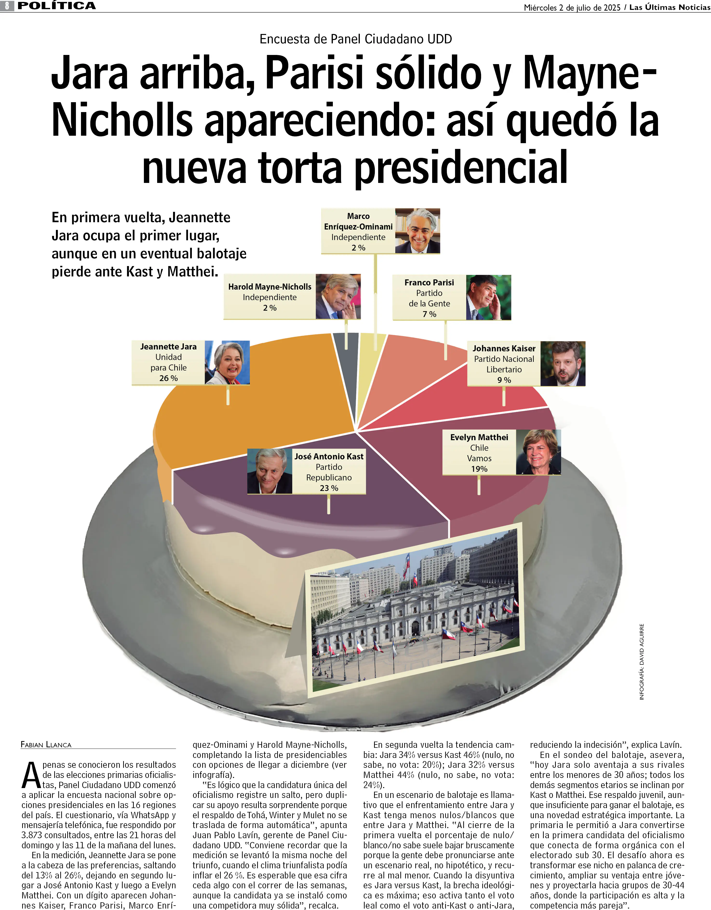 Jara arriba, Parisi sólido y Mayne-Nicholls apareciendo: así quedó la nueva torta presidencial
