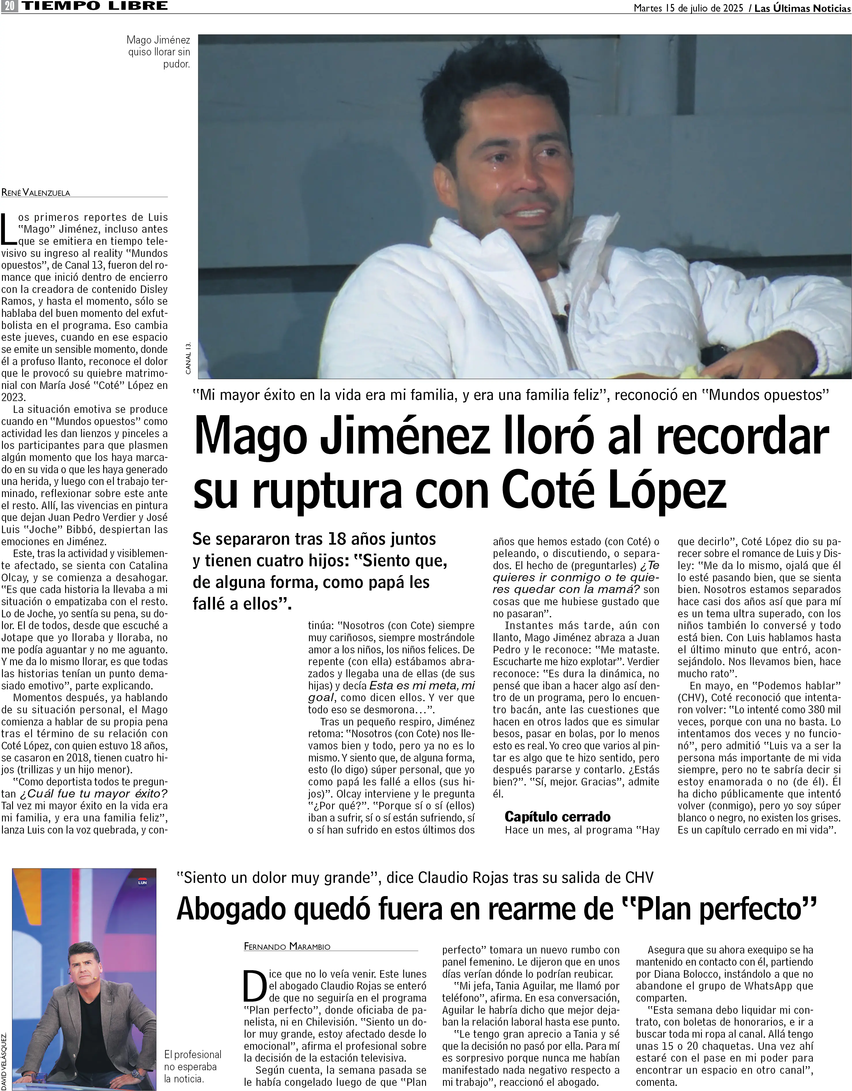 Mago Jiménez lloró al recordar su ruptura con Coté López