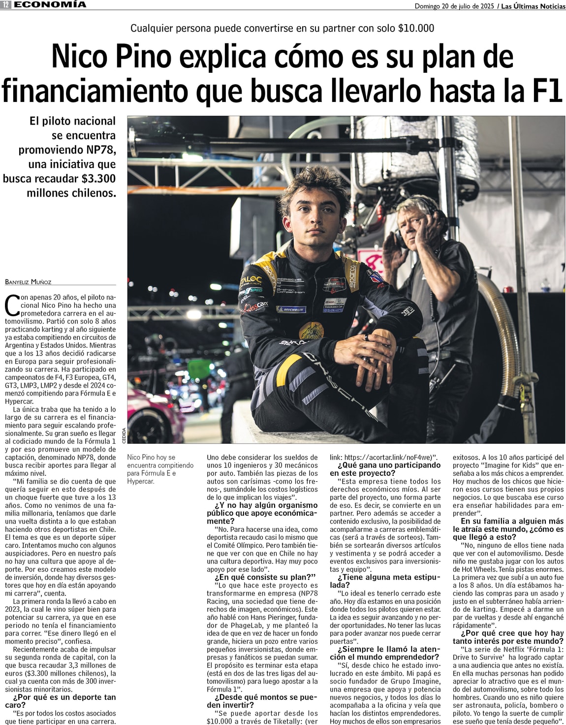 Nico Pino explica cómo es su plan de financiamiento que busca llevarlo hasta la F1