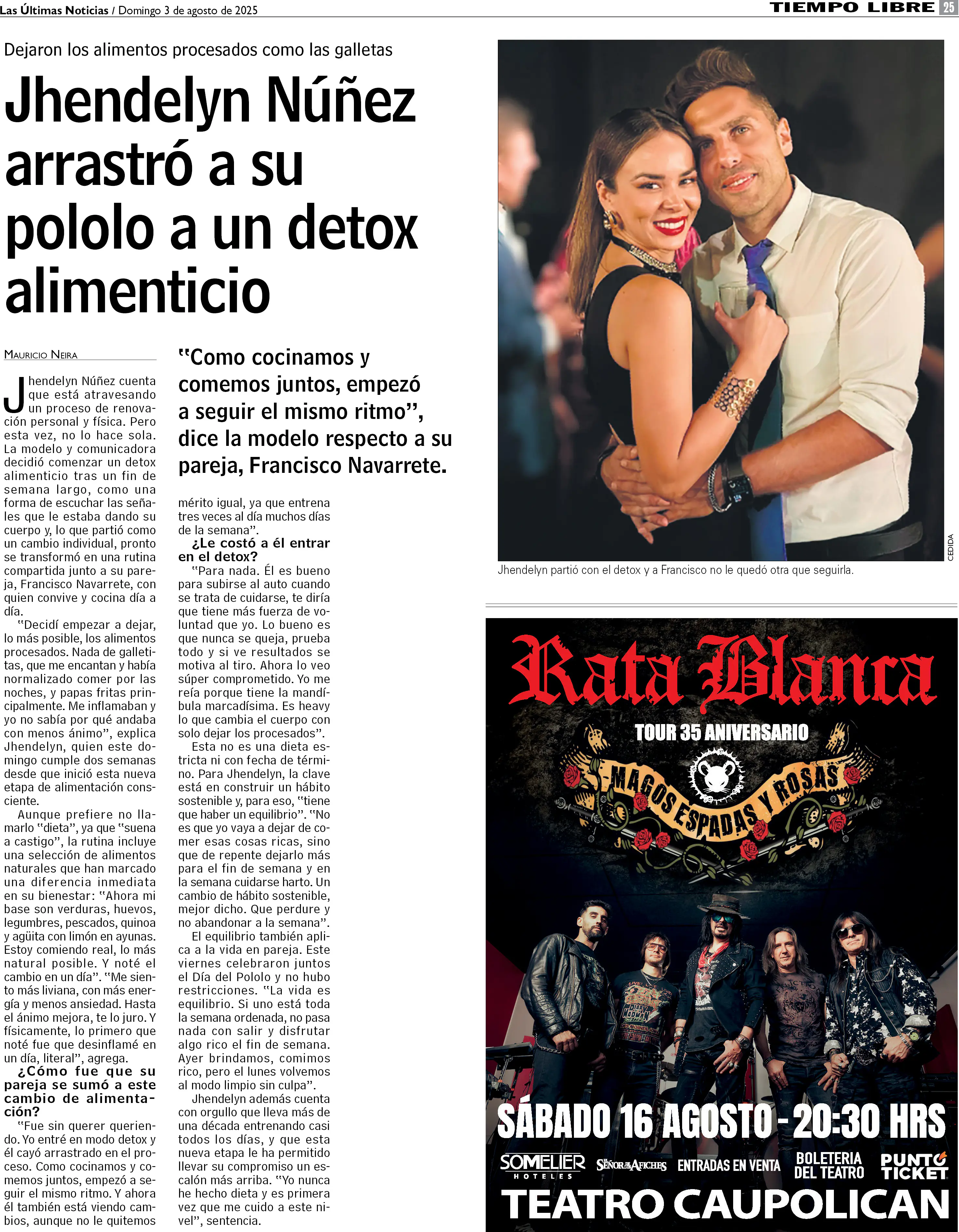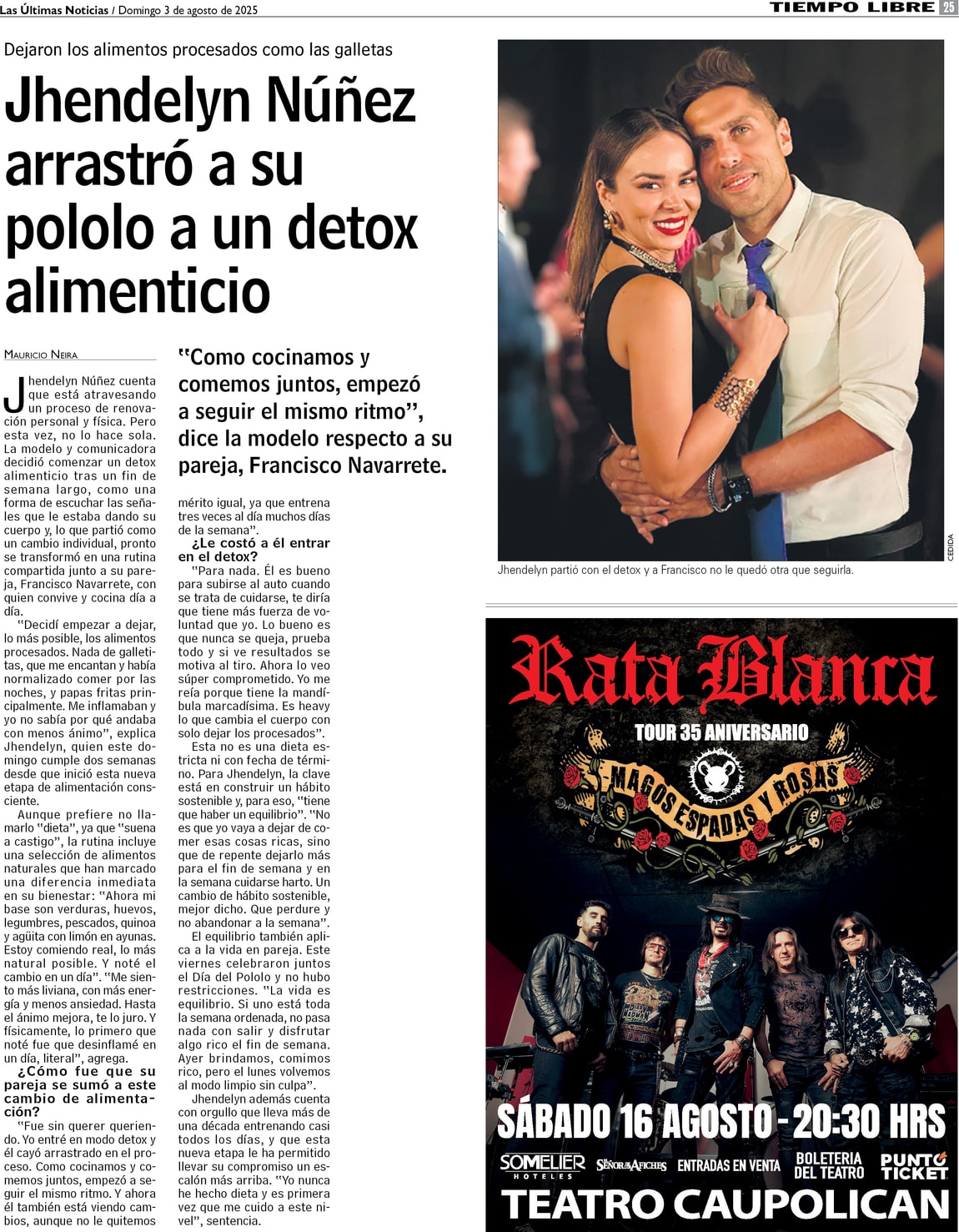 Jhendelyn Núñez arrastró a su pololo a un detox alimenticio