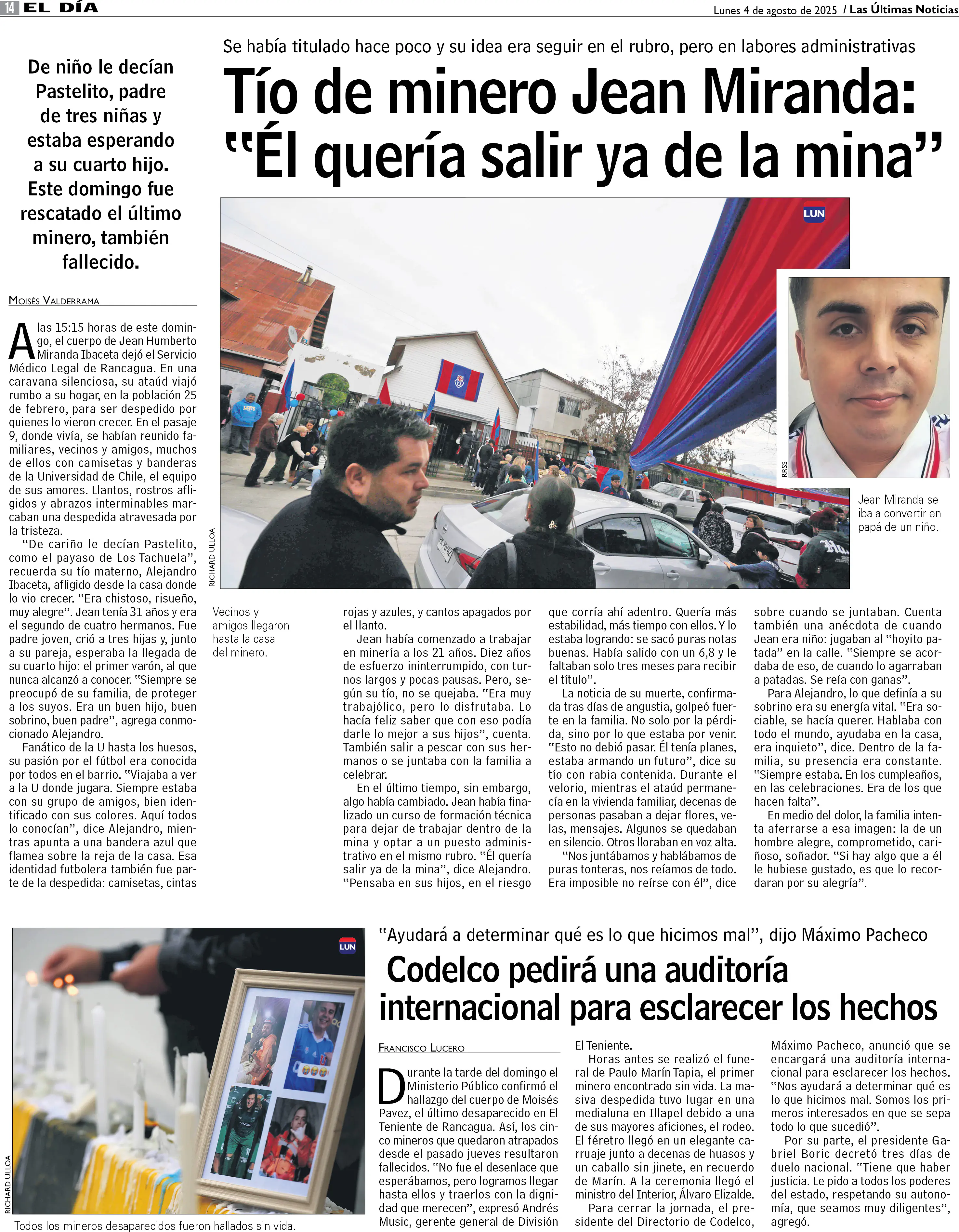 Tío de minero que murió en El Teniente: "Él quería salir ya de la mina"