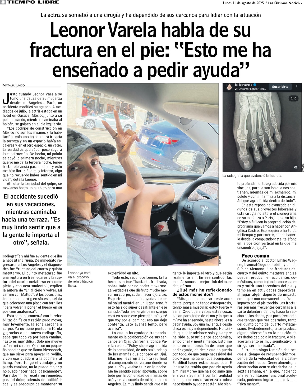 Leonor Varela habla de su fractura en el pie: "Esto me ha enseñado a pedir ayuda"