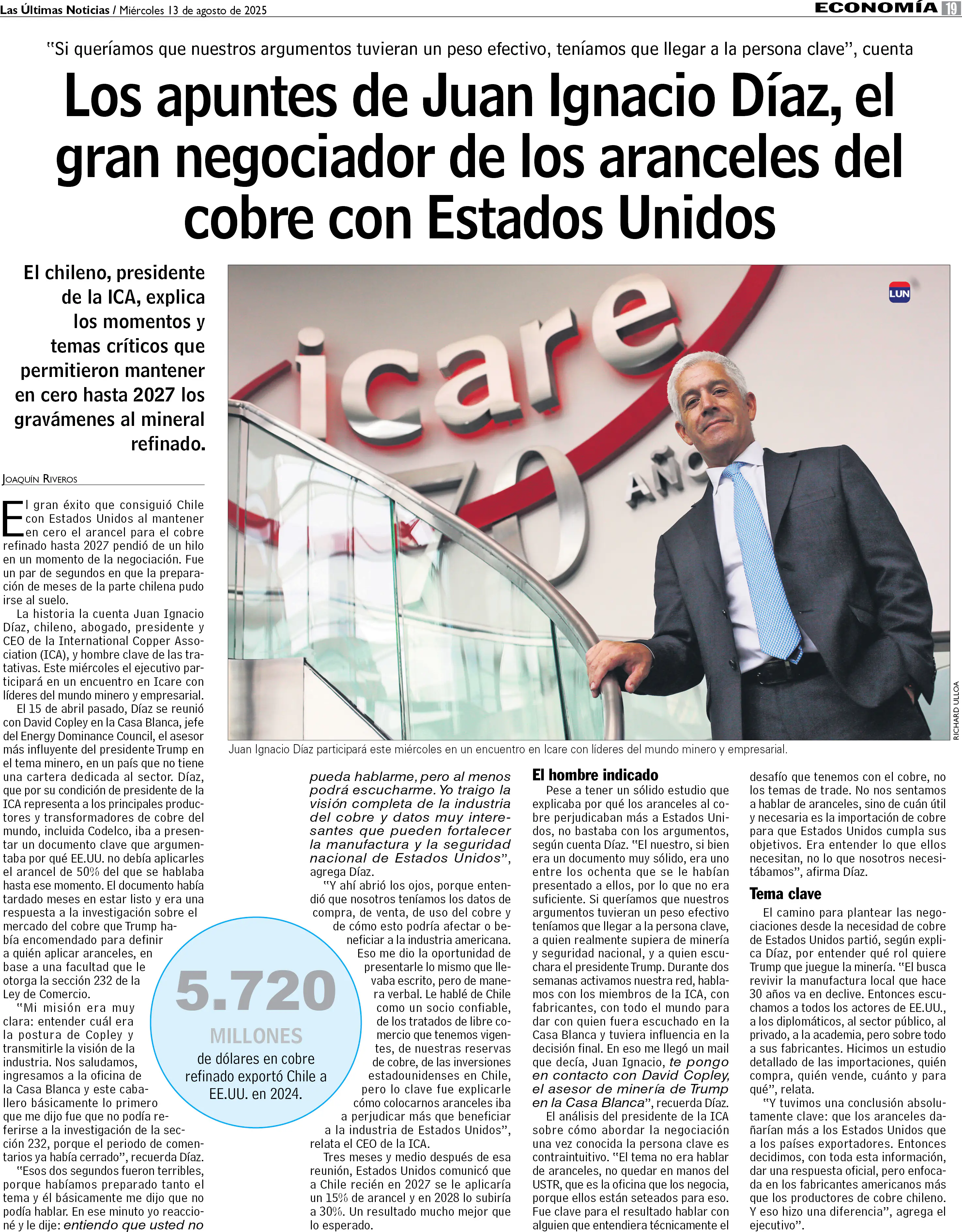 Los apuntes de Juan Ignacio Díaz, el gran negociador de los aranceles del cobre con Estados Unidos