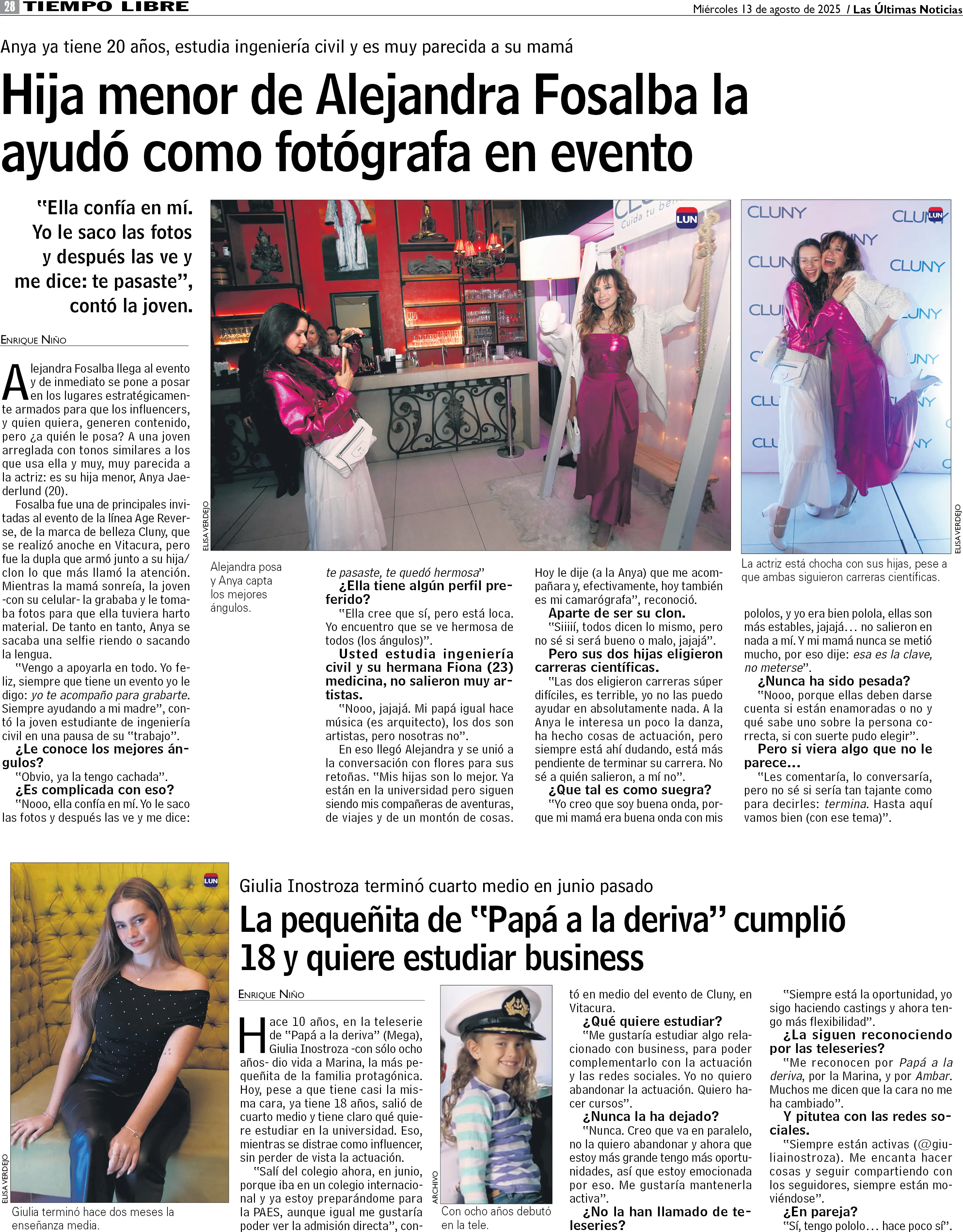 Hija menor de Alejandra Fosalba la ayudó como fotógrafa en evento