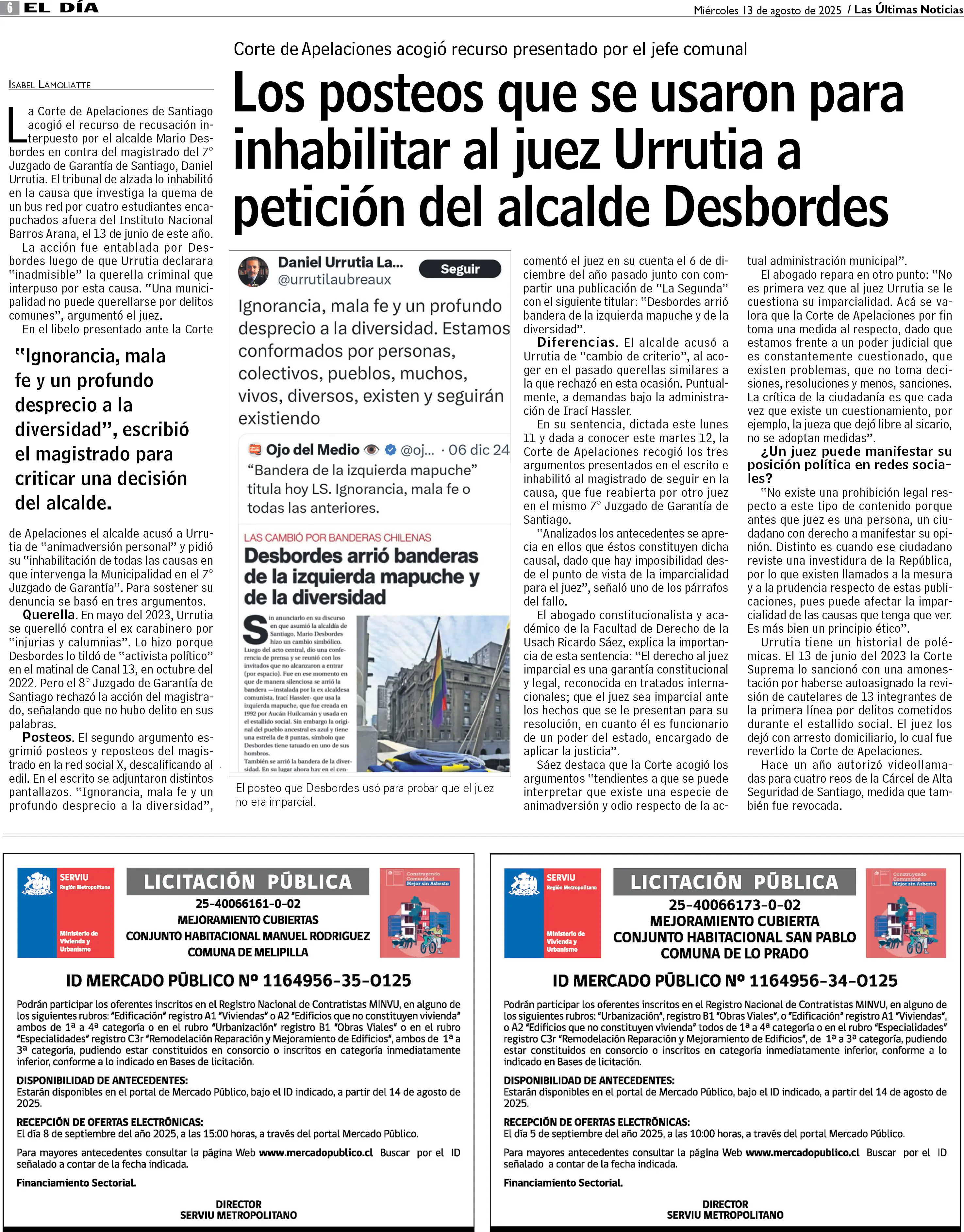 Los posteos que se usaron para inhabilitar al juez Urrutia a petición del alcalde Desbordes