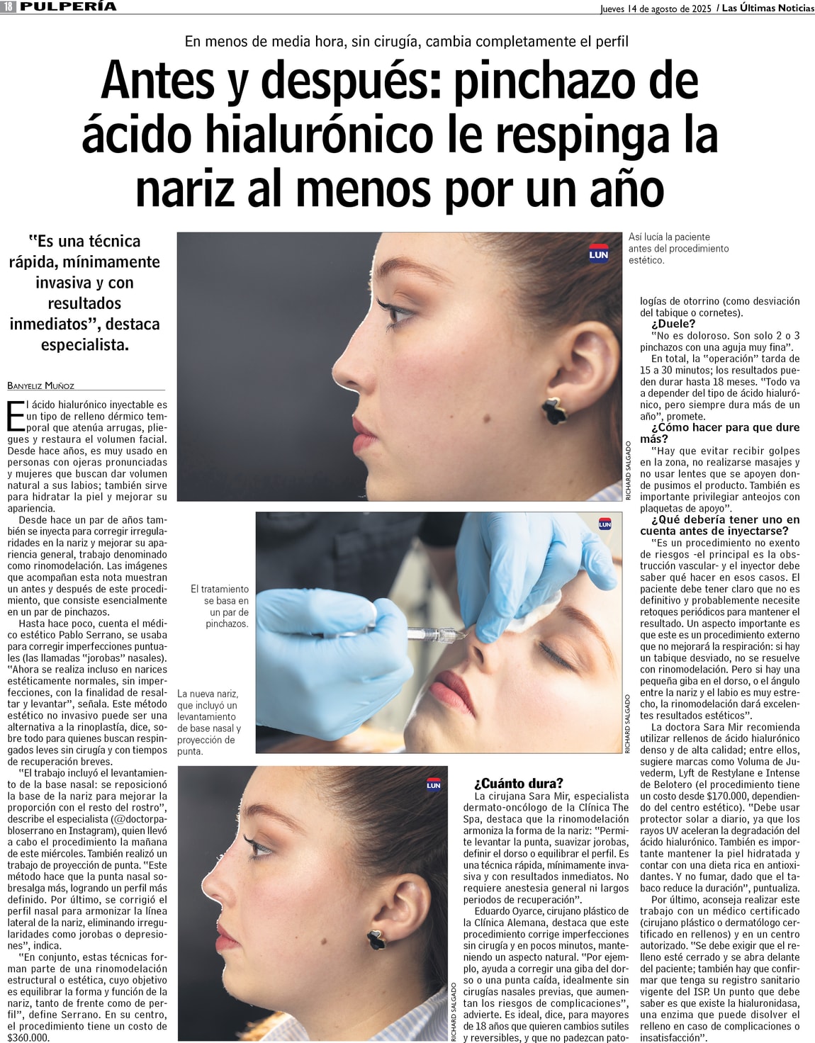 Antes y después: pinchazo de ácido hialurónico le respinga la nariz al menos por un año