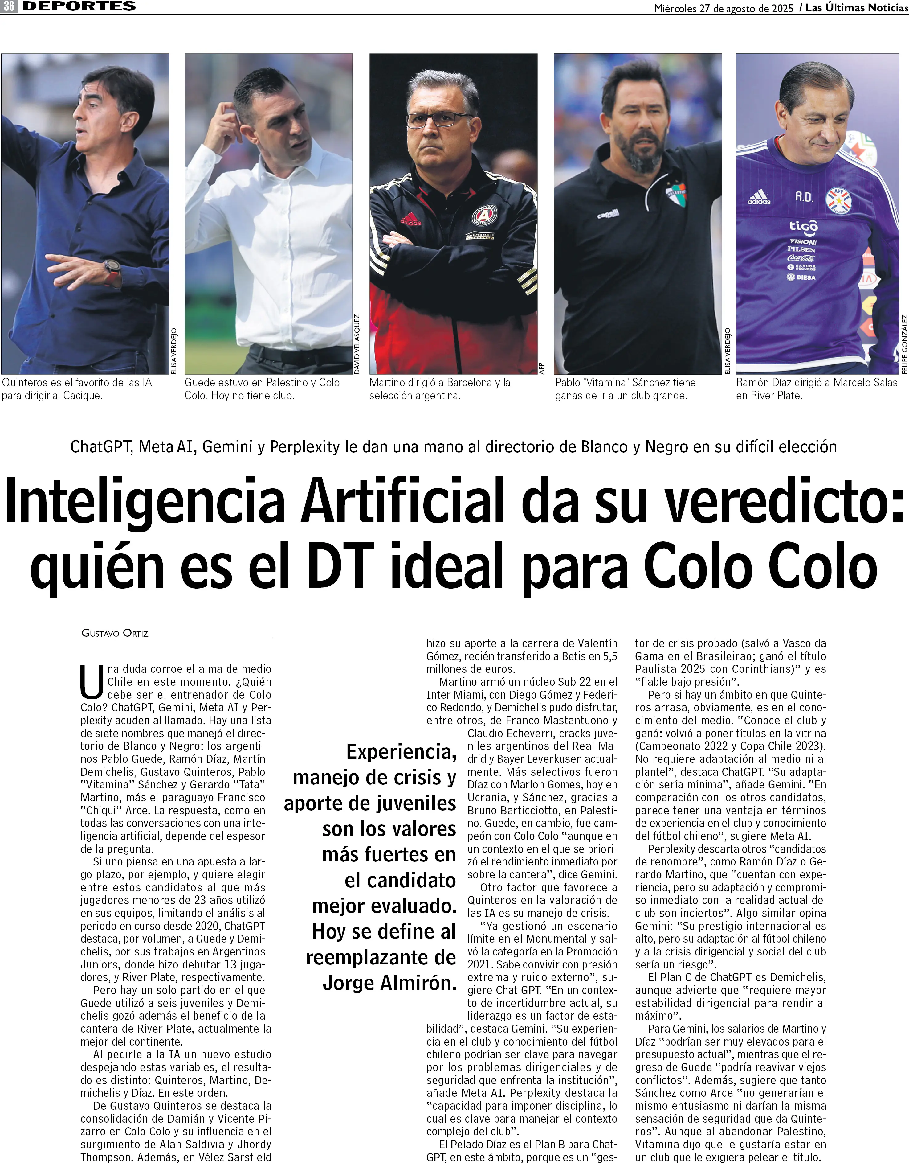 Cuatro modelos de Inteligencia Artificial buscan DT para Colo Colo