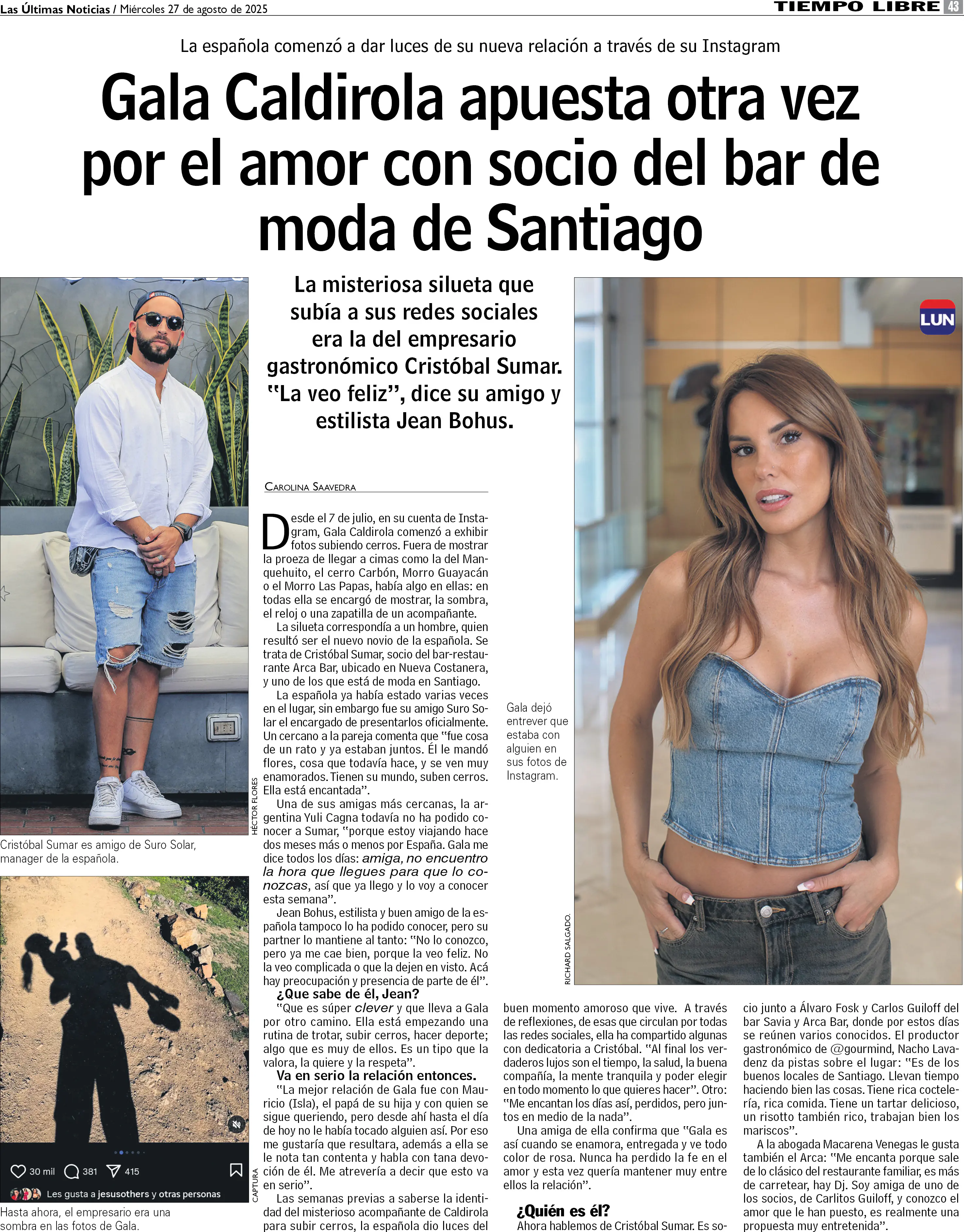 Gala Caldirola apuesta otra vez por el amor con socio del bar de moda de Santiago