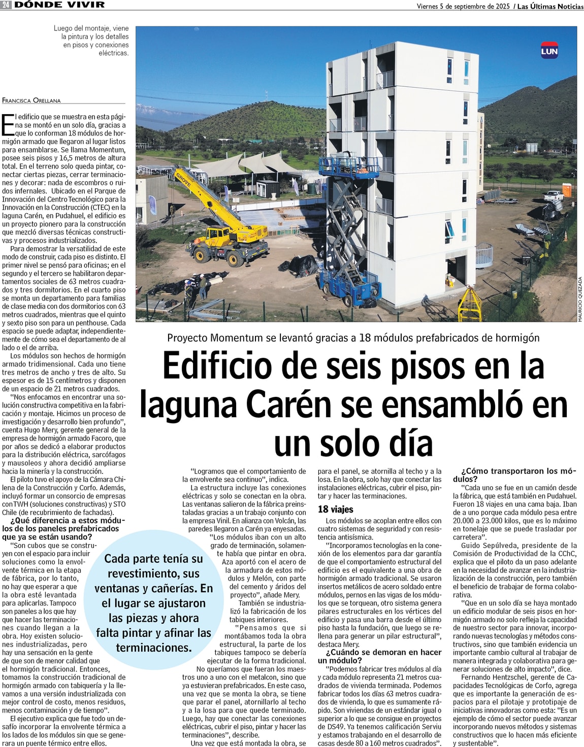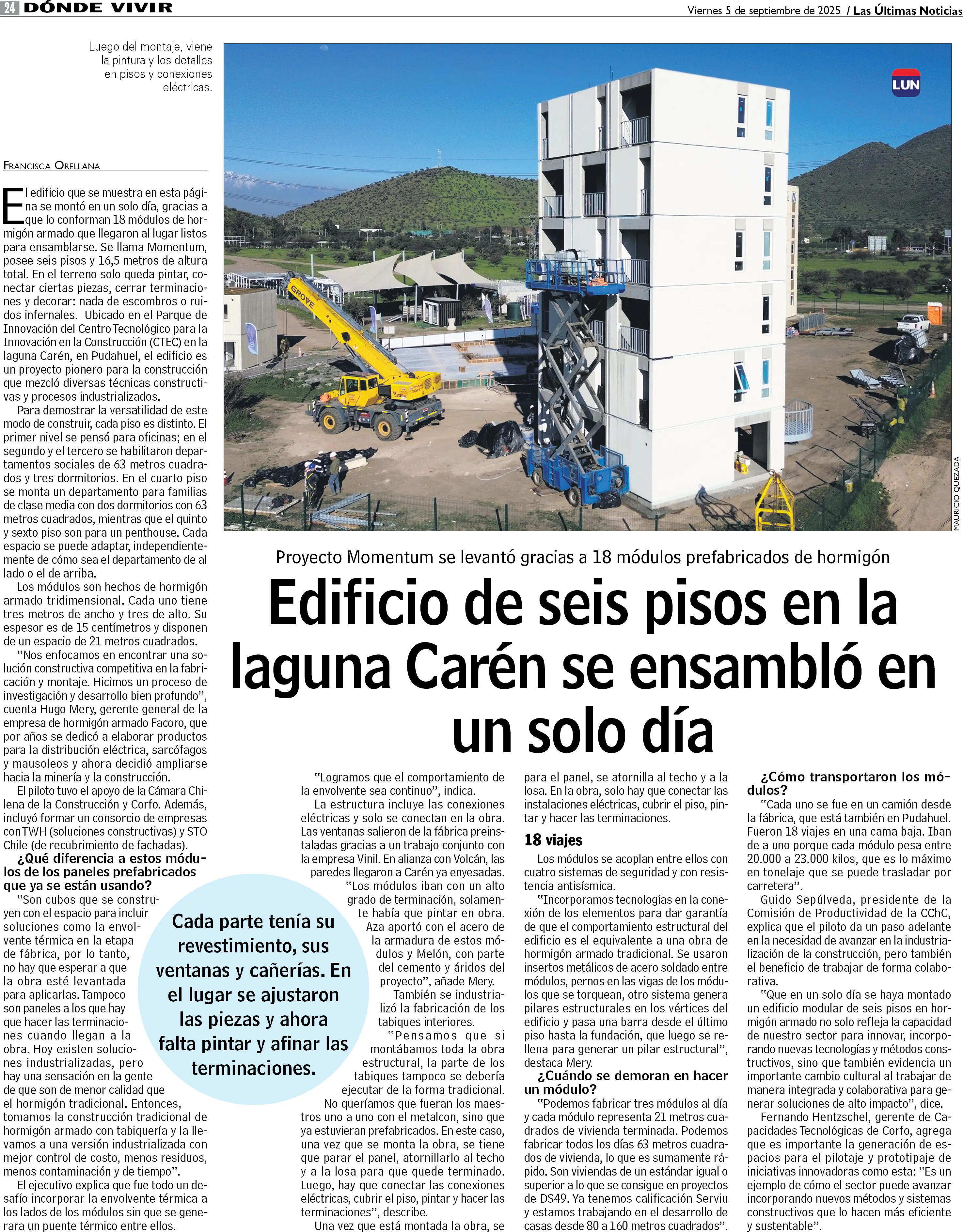 Edificio de seis pisos en la laguna Carén se ensambló en un solo día