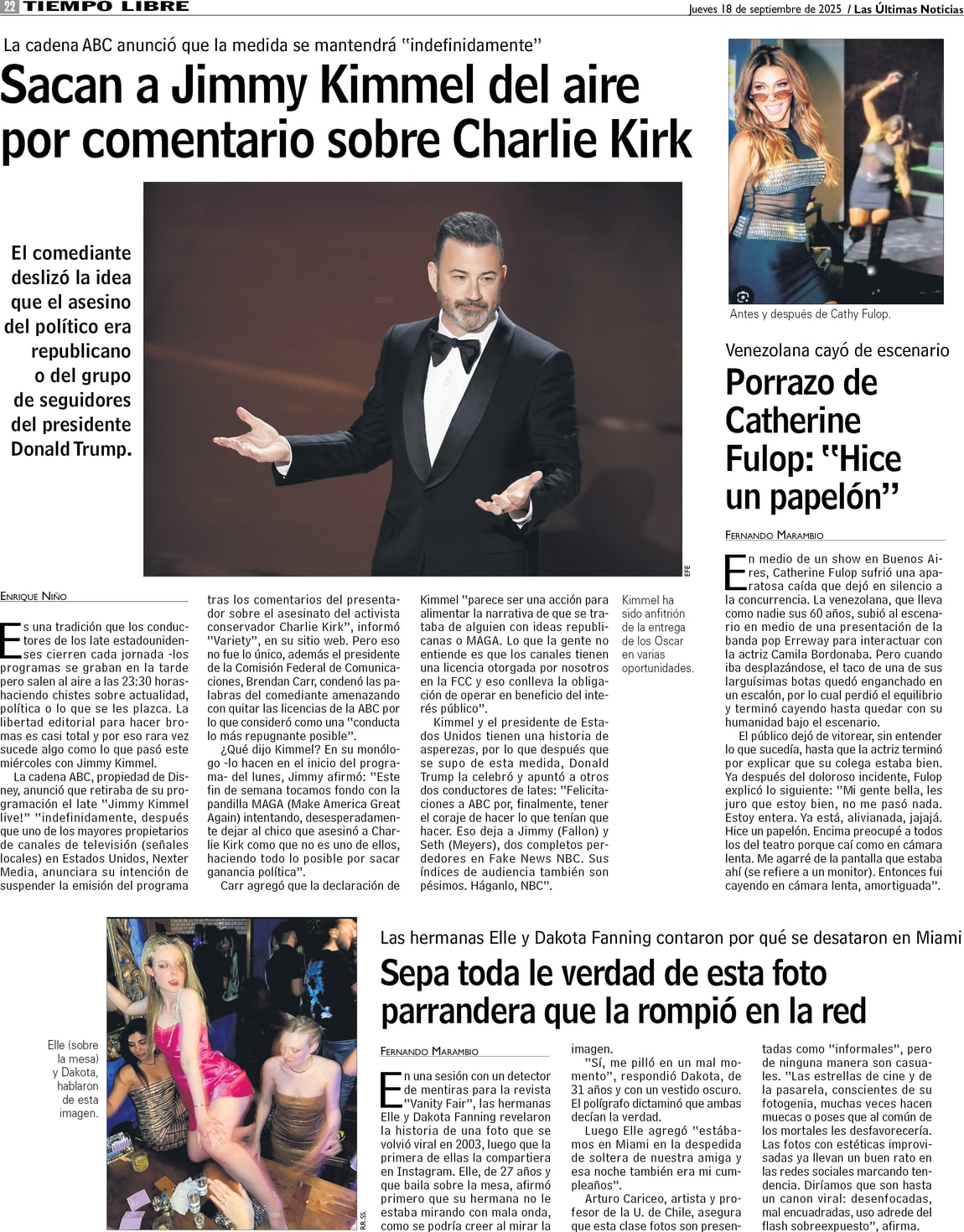 Sacan a Jimmy Kimmel del aire por comentario sobre Charlie Kirk