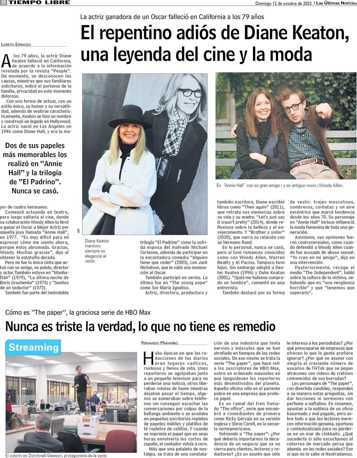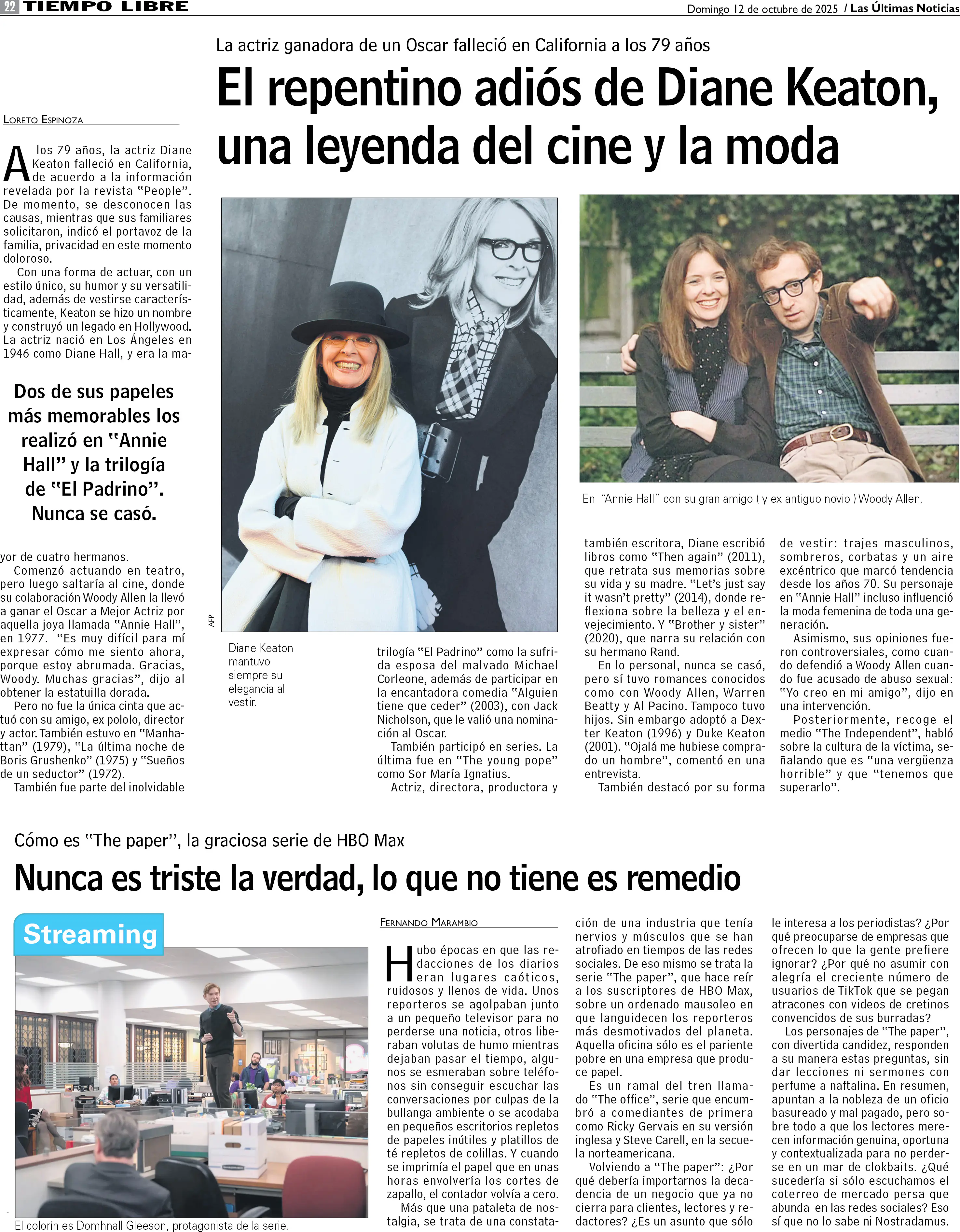 El repentino adiós de Diane Keaton, una leyenda del cine y la moda
