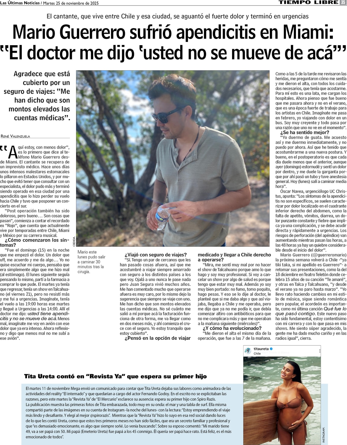 Mario Guerrero sufrió apendicitis en Miami: "El doctor me dijo usted no se mueve de acá"
