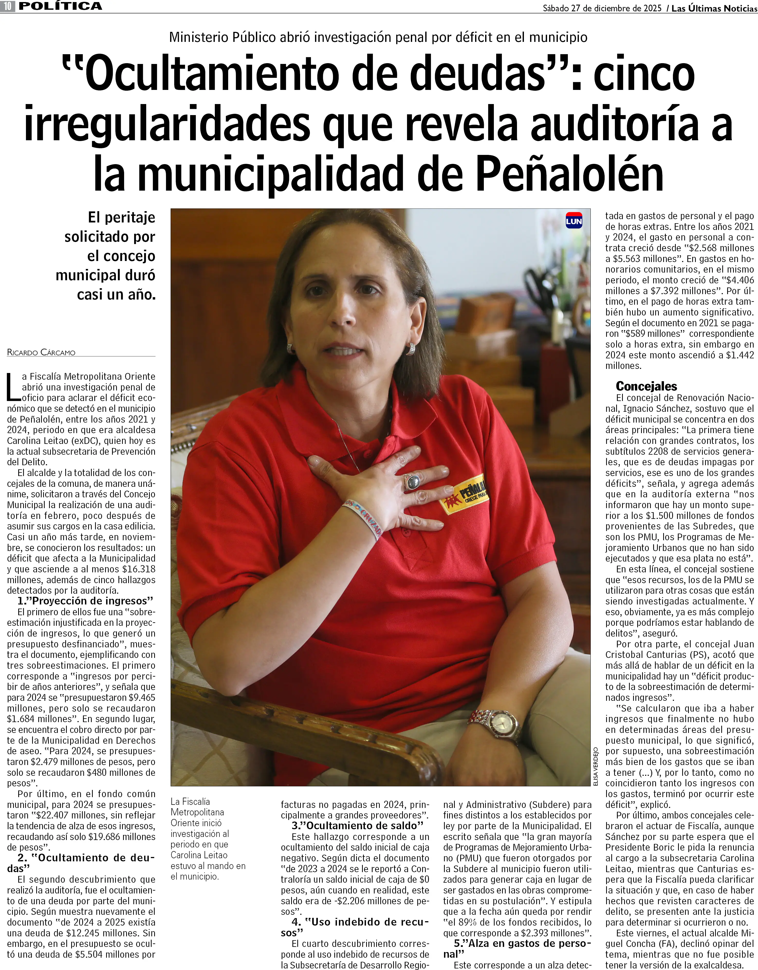 "Ocultamiento de deudas": cinco irregularidades que revela auditoría a la municipalidad de Peñalolén