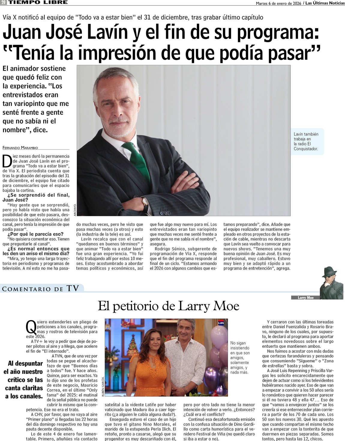 Juan José Lavín y el fin de su programa: "Tenía la impresión de que podía pasar"