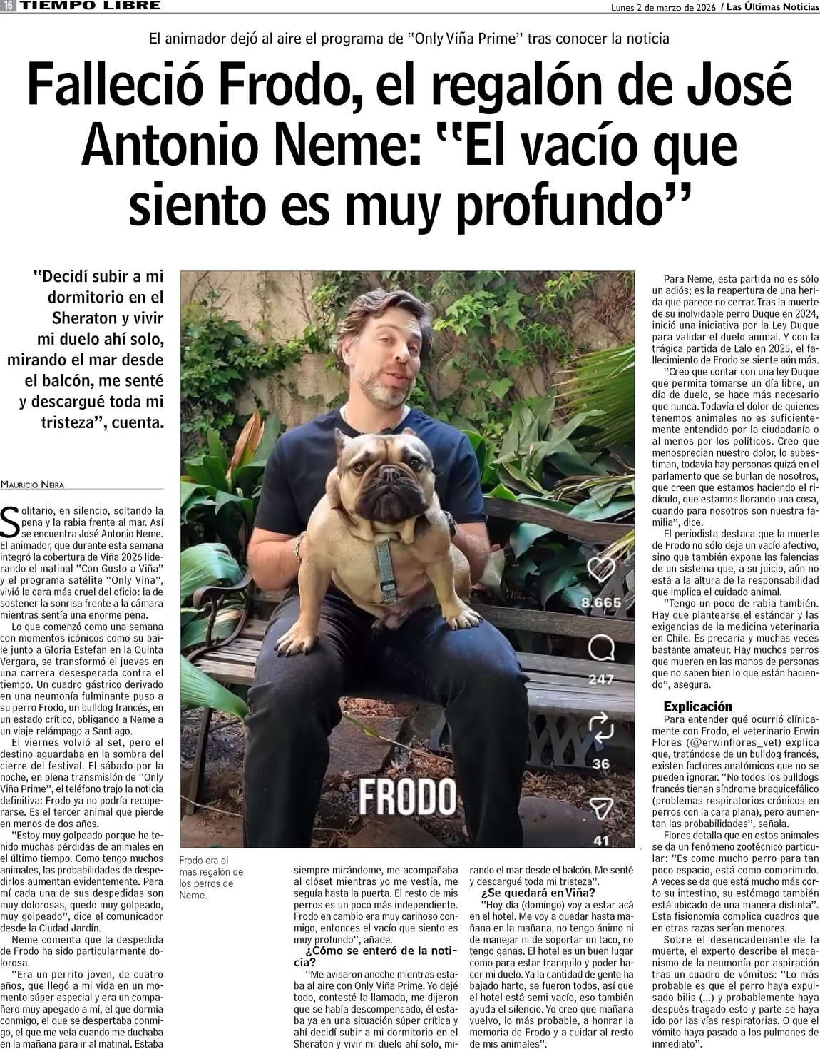 Falleció Frodo, el regalón de José Antonio Neme: "El vacío que siento es muy profundo"