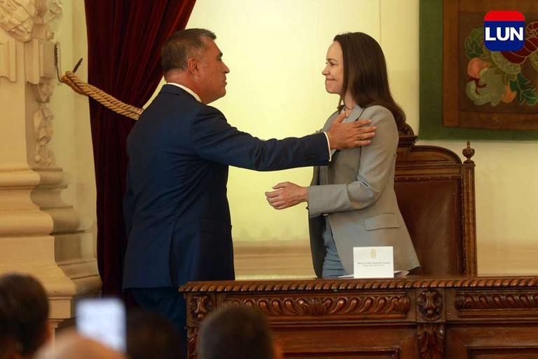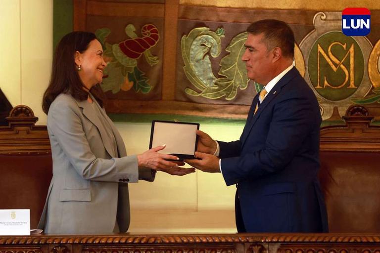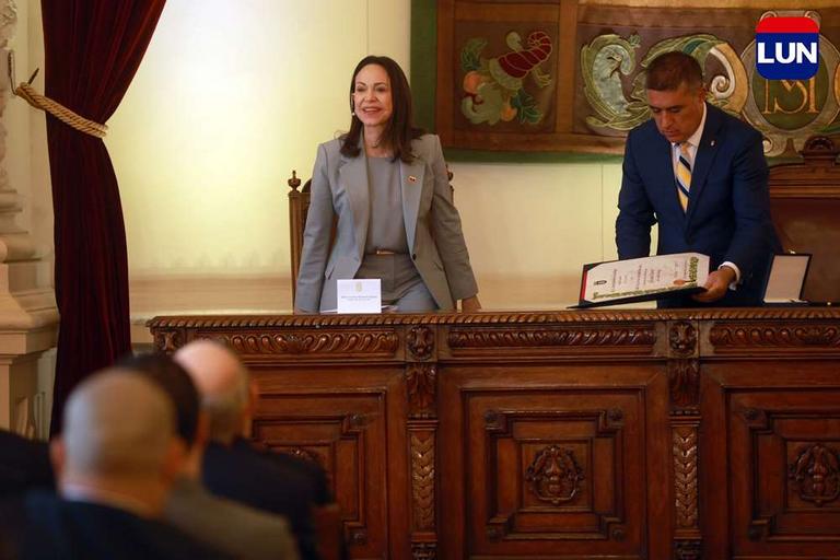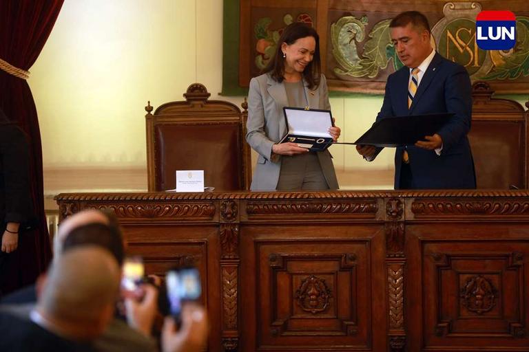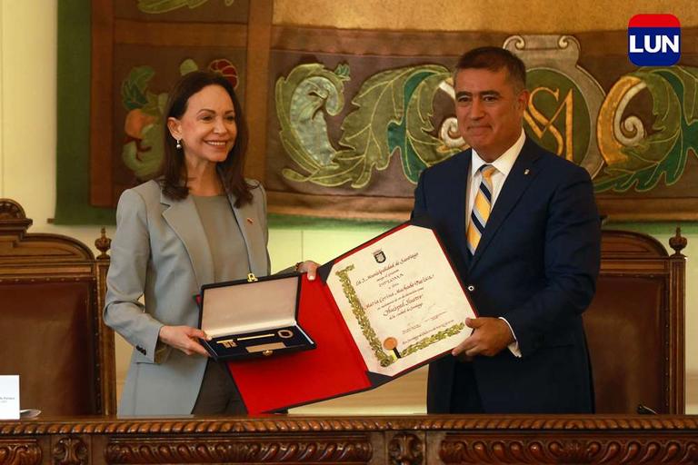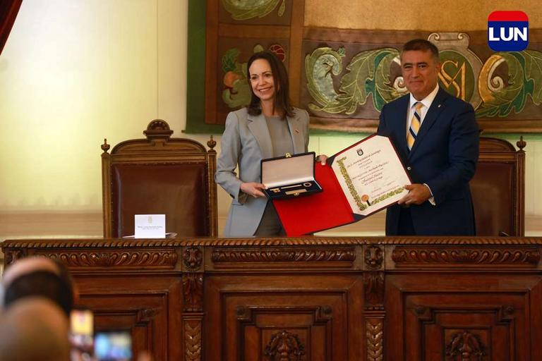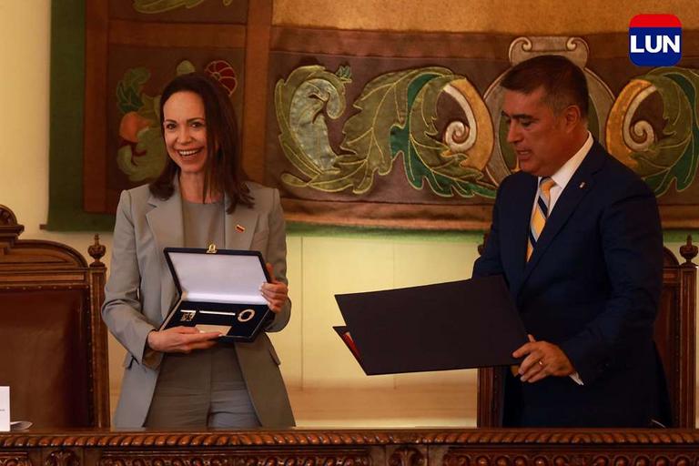 Líder opositora venezolana recibió las llaves de la ciudad de Santiago. Fotos: Elisa Verdejo