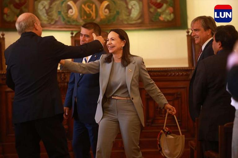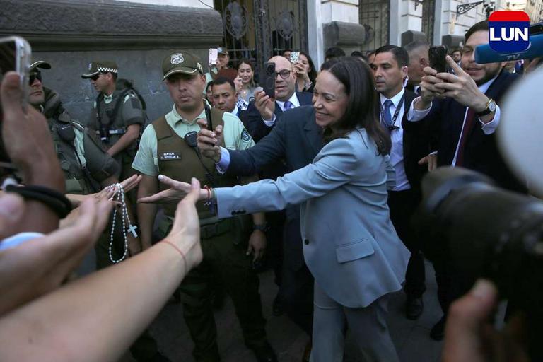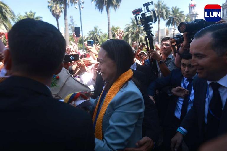 A lo rockstar: cientos de venezolanos recibieron a Corina Machado en la Plaza de Armas